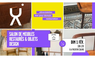 Salon de meubles restaurés et objets design Ultraviolettes et La Tricoterie s’associent pour vous proposer un salon de meubles design & restaurés. Le dimanche 1er février 2026, de 10h à 17h, (...)